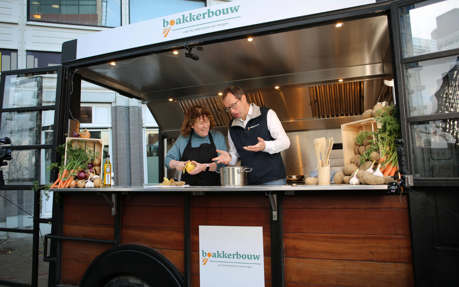 We plaatsen een food truck voor de Tweede Kamer zodat Kamerleden zelf konden ervaren wat de akkerbouw produceert. Samen met de directeur van BO Akkerbouw gingen ze aan de slag om lekkere hutspot te maken.